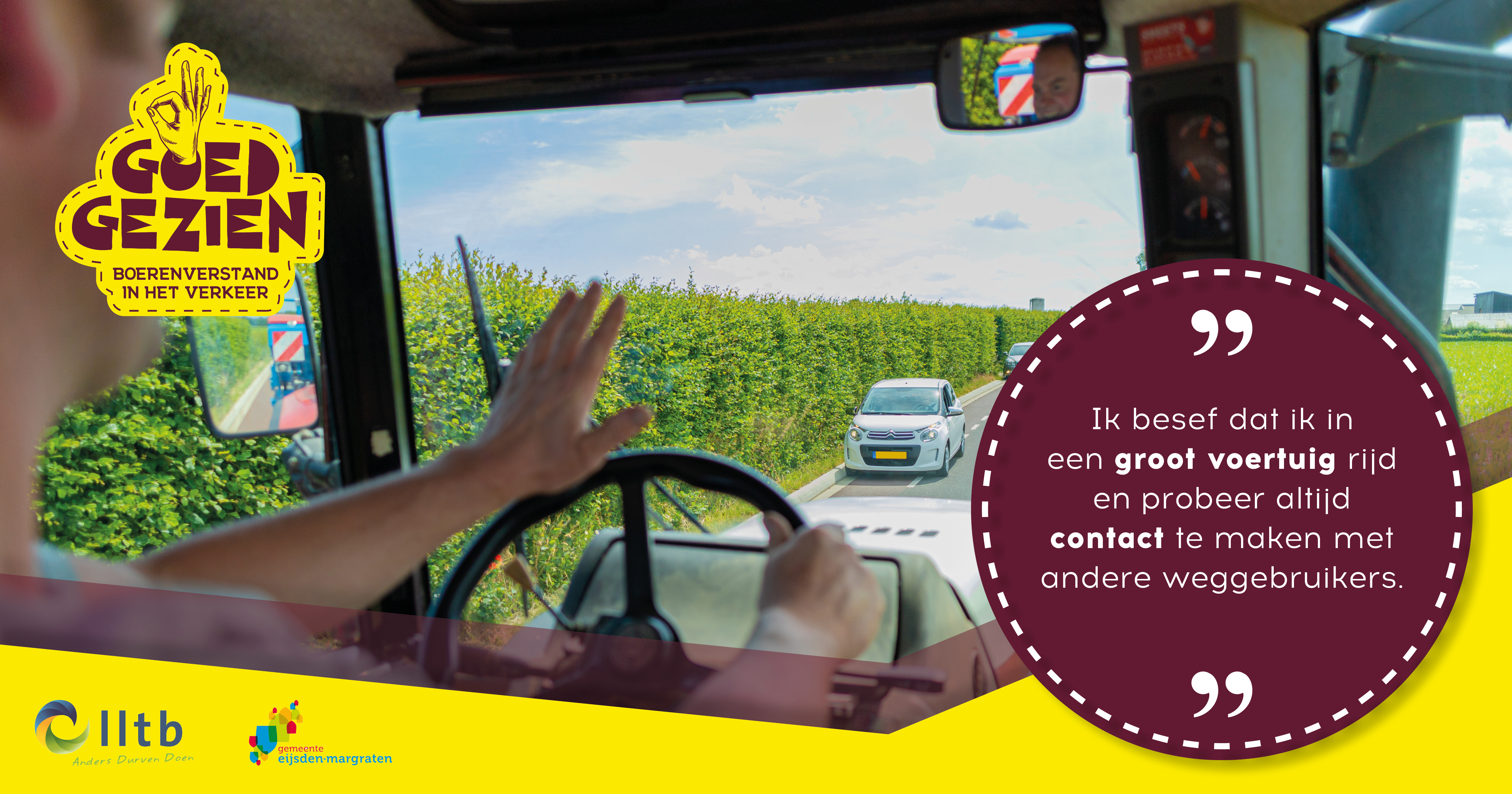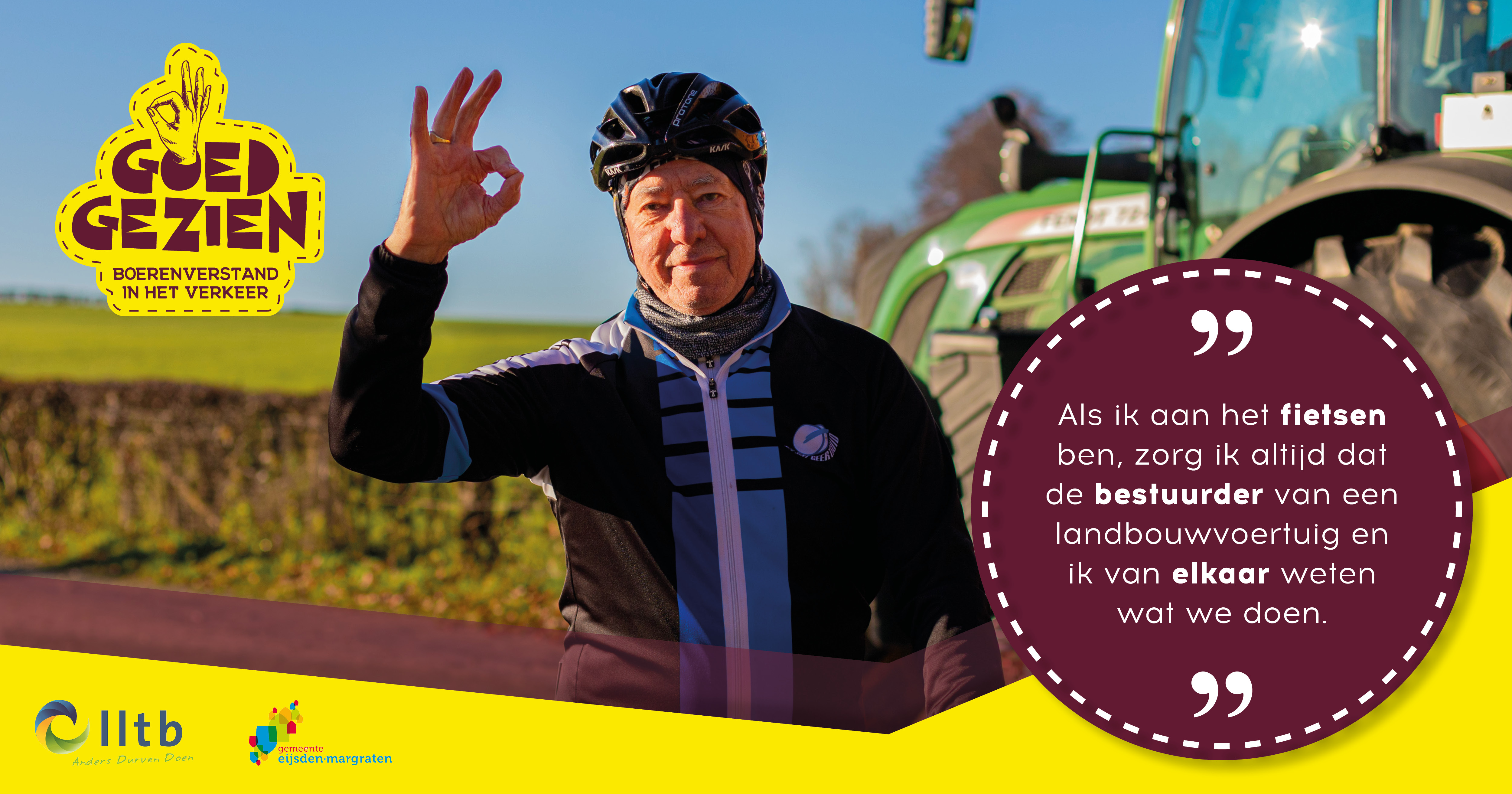 Met de campagne ‘Goed Gezien – Boerenverstand in het verkeer’ wordt aandacht gevraagd voor de verkeersveiligheid van zowel agrarische ondernemers als medeweggebruikers. De campagne is een initiatief van het LLTB-regiobestuur Zuid-Limburg en is in september 2020 in de gemeente Eijsden-Margraten van start gegaan. Op 27 mei 2021 is de ‘Goed Gezien’ verkeerscampagne verder uitgerold in de gemeenten Vaals, Gulpen-Wittem en Valkenburg middels een bannercampagne.